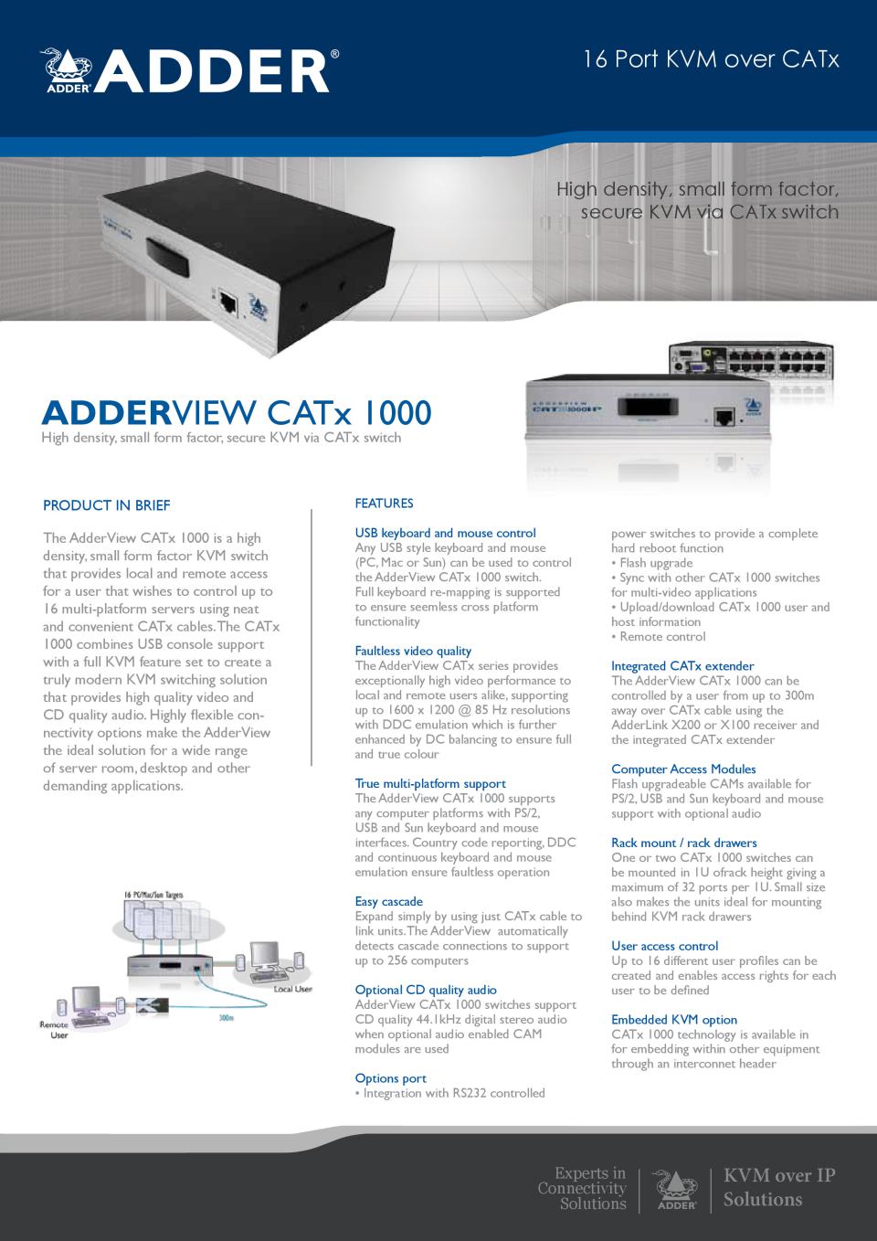 la conception et la production d'Adder une gamme avancée de commutateurs KVM, amplificateurs et solutions IP qui permettent le contrôle fiable des systèmes informatiques locaux, distants et mondiaux.