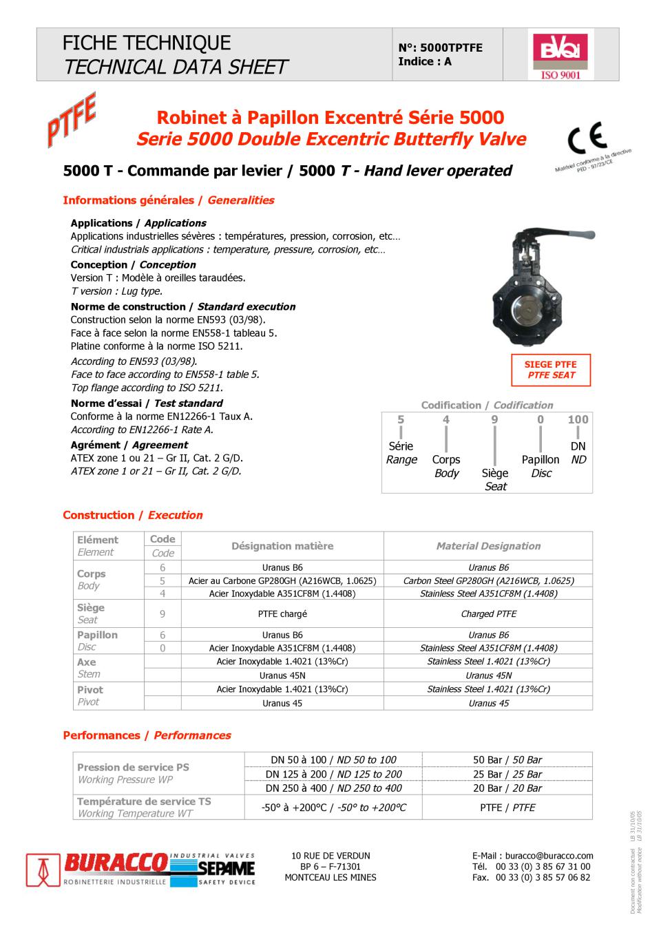 Fort d'un savoir-faire et d'une expérience de plus d'un siècle, BURACCO a développé une gamme de vanne papillon haute performance à triple excentration Métal/Métal, étanche selon les impositions de la norme ANSI B16-104 FCI 70-2 CLASS VI.
