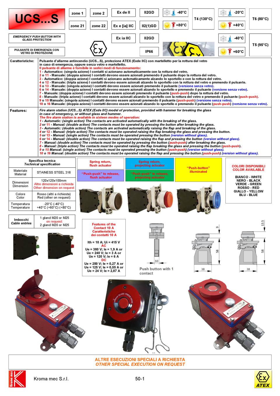 Les produits actuellement disponibles sont une gamme complète de matériaux antidéflagrants, une tentative d'explosion Exd - Exe - Ex.