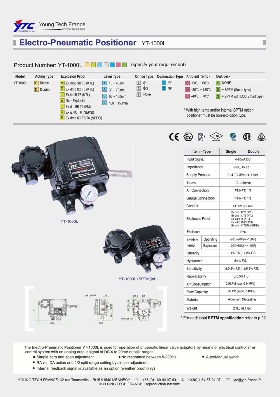 Notre savoir-faire repose sur une expérience de plus de 20 ans dans le domaine du contrôle de vanne. C?est grâce à cette expérience qu?YTC est devenu le leader dans la fabrication de positionneur de vanne, d?amplificateur de débit et de transmetteur de position. Plus de 10 ans après sa création, YTC propose désormais ses produits dans plus de 45 pays à travers le monde.Pour satisfaire les attentes de nos clients, les produits YTC sont certifiés par différents organismes de contrôle locaux et internationaux. Suivant la norme de qualité ISO 9001, chacun de nos produits est réalisé selon des procédés sophistiqués, par nos ouvriers expérimentés et avec les meilleurs matériaux. Parallèlement YTC continue de développer de nouveaux produits et technologies pour toujours répondre au besoin d?une industrie en constante évolution.Nous sommes confiants dans la capacité de nos produits à satisfaire nos clients. YTC continuera toujours à développer des technologies de pointe pour garantir des solutions de contrôle efficaces et précises.Cordialement,